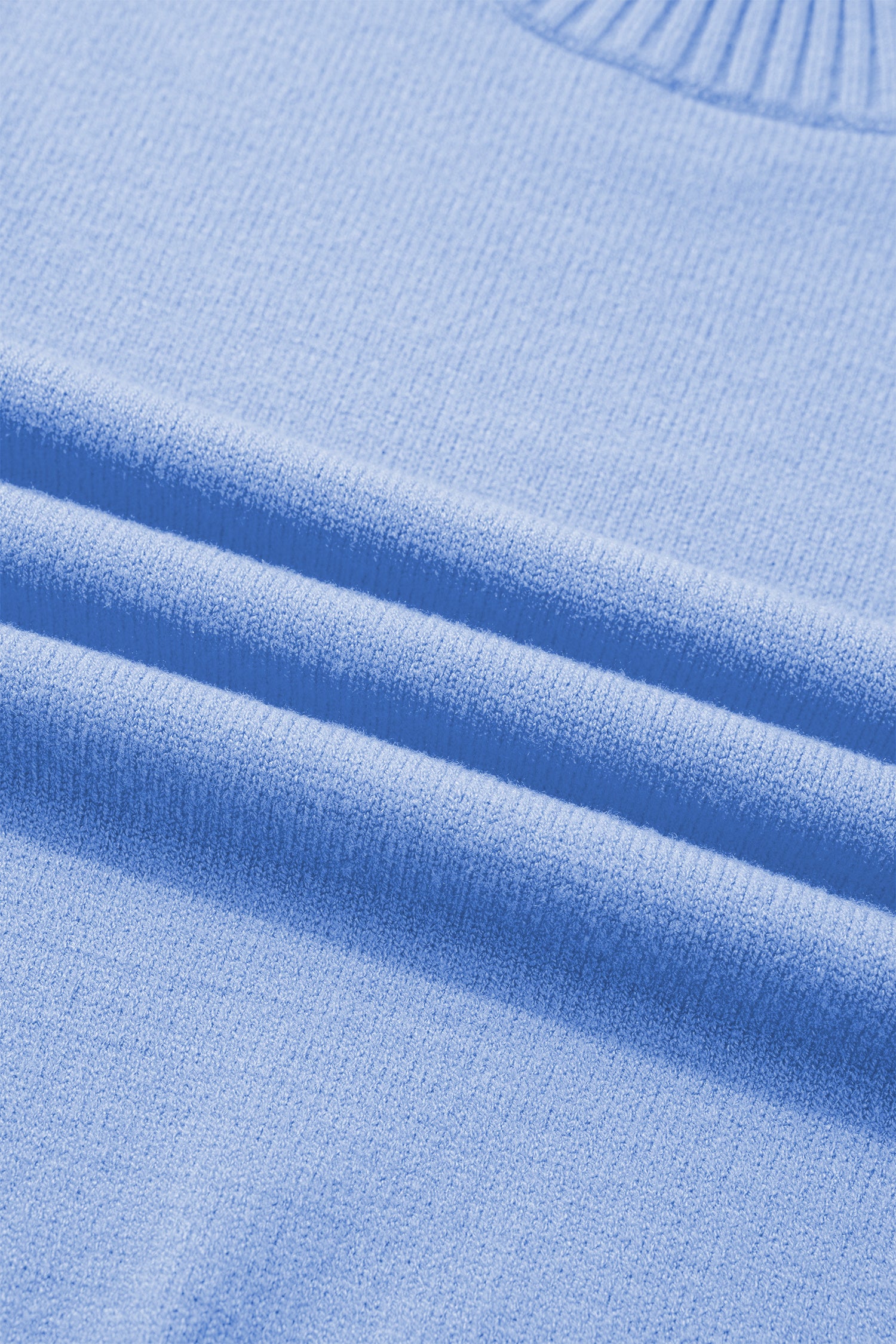 Beau Blue Solid Color Ribbed Trim Round Neck Ruffle Short Sleeve Sweater